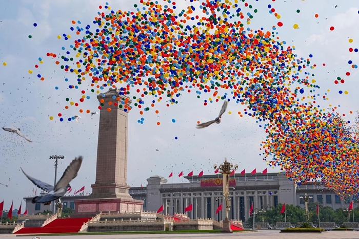 2025年9月3日,天安門廣場(chǎng)騰空而起的8萬支彩色氣球?qū)?ldquo;紀(jì)念中國人民抗日戰(zhàn)爭(zhēng)暨世界反法西斯戰(zhàn)爭(zhēng)勝利80周年大會(huì)”再次推向高潮……